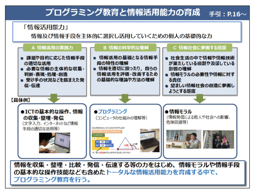目的:文部科学省が「小学校プログラミング教育の概要1」で掲げる3つの目的